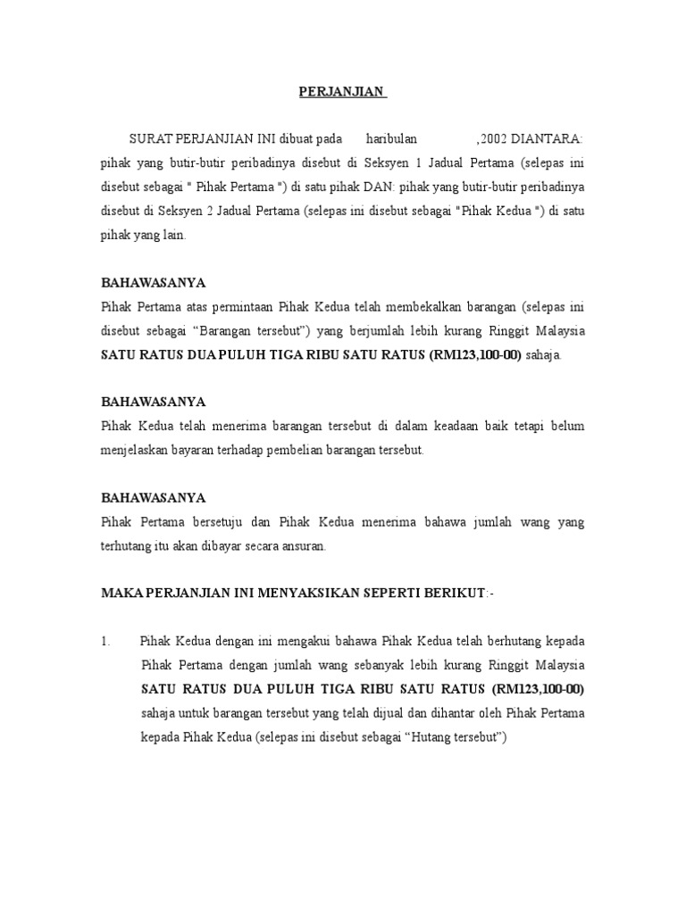 Contoh Surat Perjanjian Pinjaman Wang Pdf Word